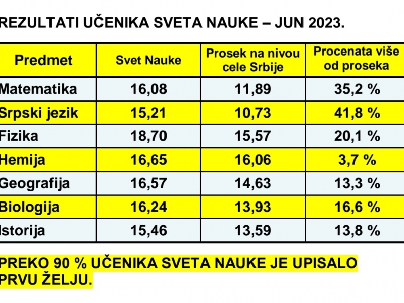 SVET NAUKE PONOVO ISPUNIO SVOJ CILJ! PREKO 90% UČENIKA SVETA NAUKE JE UPISALO PRVU ŽELJU!...